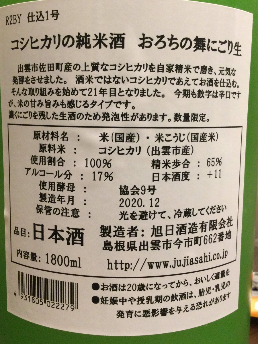 今日は予告しておりました通り、「十字旭日 コシヒカリ純米濁り“おろちの舞”」を開栓します。