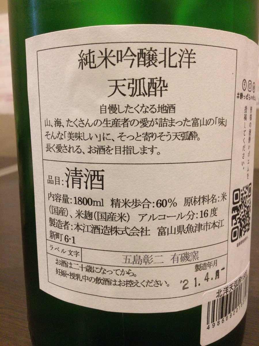 先日富山県から、昨年 滑川の千代鶴に続いてさらに知る人ぞ知る幻の銘酒、魚津の「天弧酔 純米吟醸 生酒」を取り寄せました。
