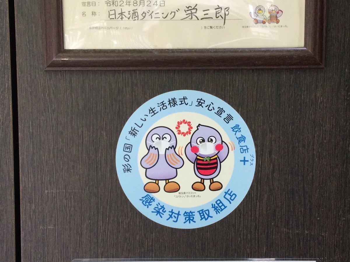 先程、埼玉県とさいたま市の職員の方々が店舗調査にいらして、感染予防対策店の「コバトンステッカー」を頂きました。