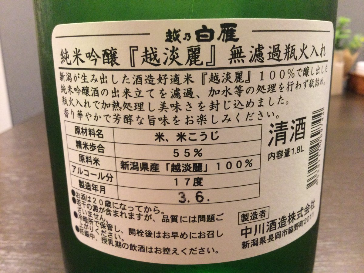 「越乃白雁(新潟県)純米吟醸“雪だるまレベル”」搾りたての無濾過原酒を瓶火入れ後に半年間低温瓶貯蔵した物で、毎年11月に発注すると翌年の5月に届く限定品です。