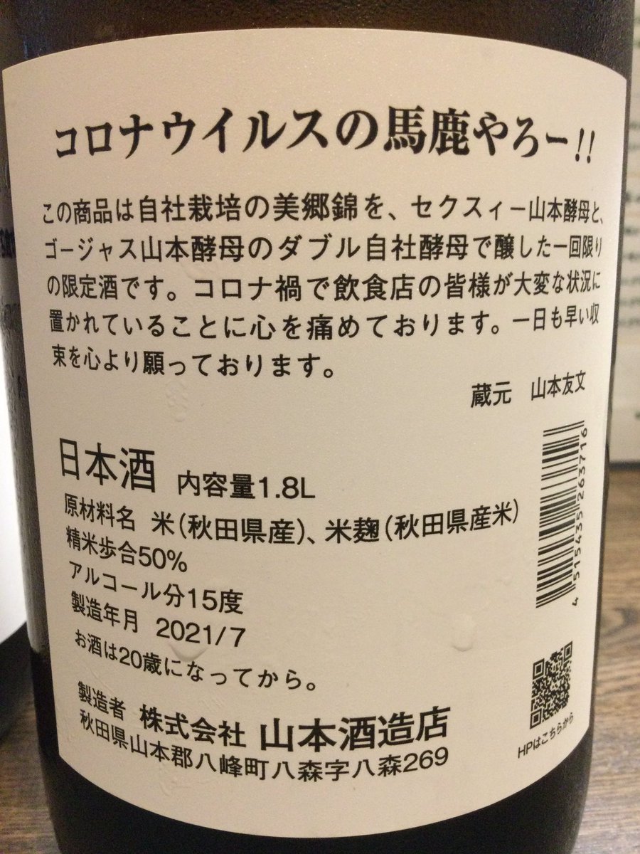 「山本(秋田県)純大“コロナウィルスの馬鹿ヤロー‼️”」ラムネのような爽快な口当たりが心地よい、「凄いなコレ!」っていう逸品です。