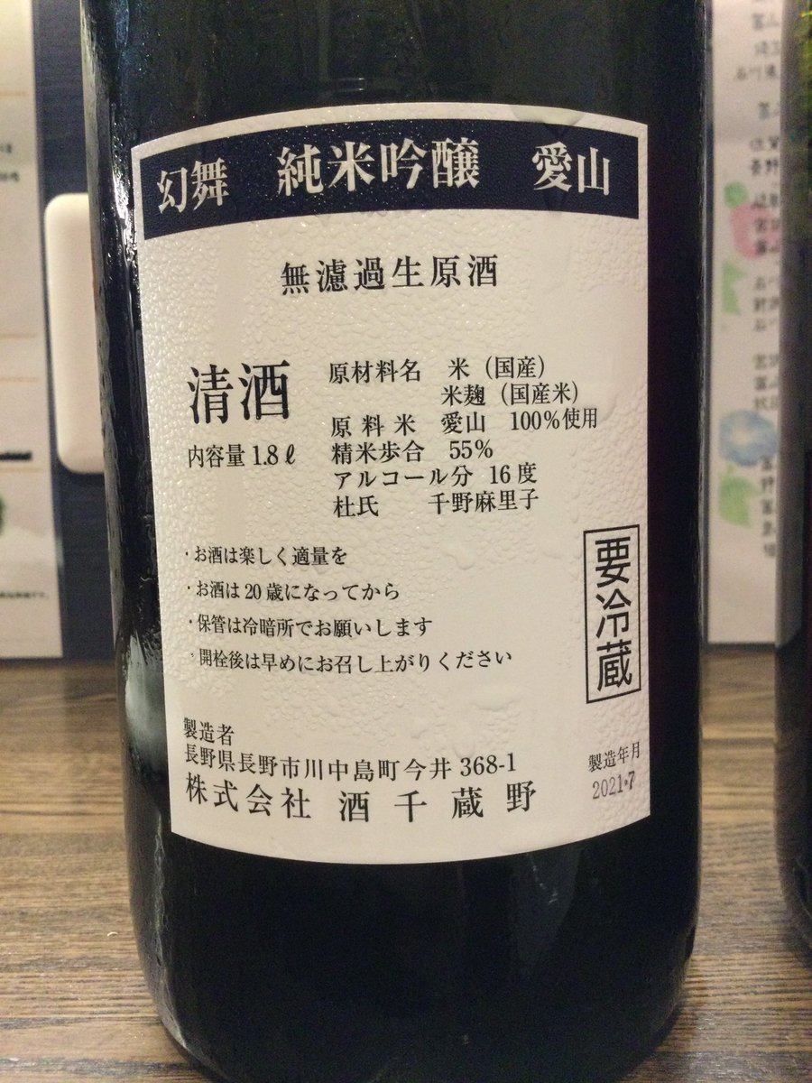 「川中島幻舞(長野県)純米吟醸“i (愛山))”」少し若過ぎな感じで普段なら数日置いて発売というお酒ですが、本日より提供します。