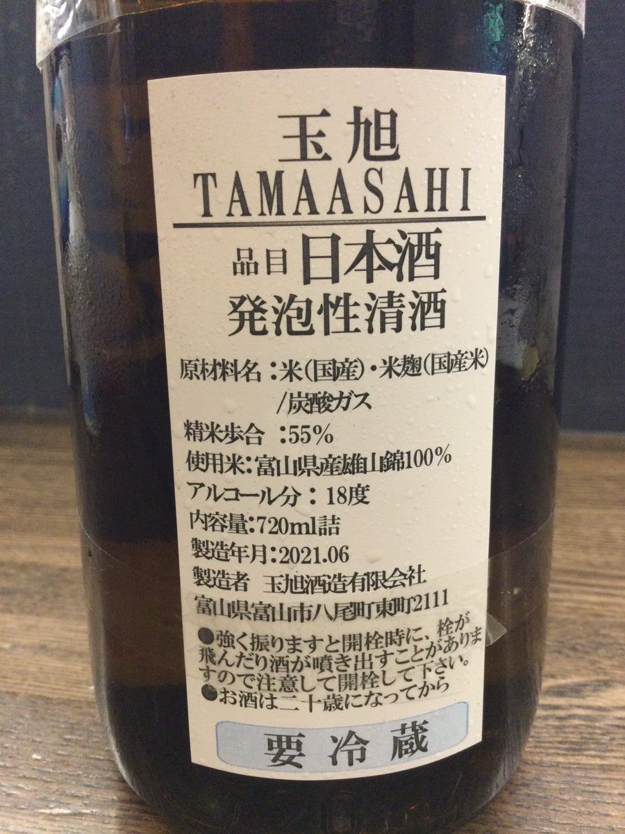 明日、10日土曜日、「玉旭(富山県)スパークリング“サケヨイボシΣ”」を開栓、100㎖ずつの限定7杯の提供します。