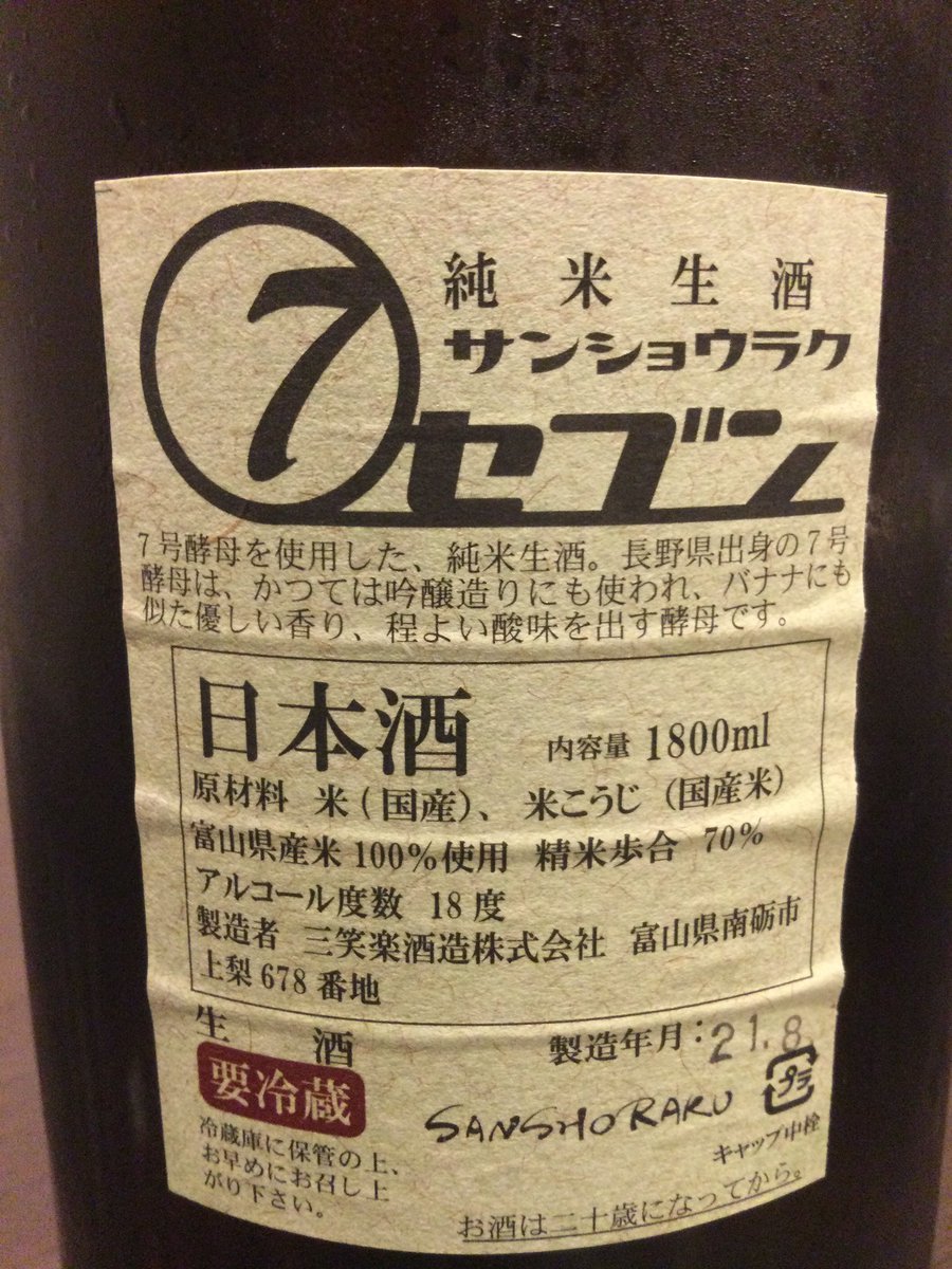 「三笑楽(富山県)純米生酒“サンショウラクセブン”」が、10月からの営業再開に間に合うように届きました。ズッシリした重量感ながらバランスよく旨いオススメの逸品です。