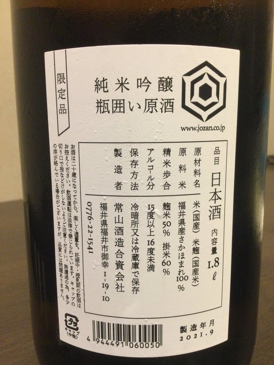 福井県から「常山 純米吟醸“ひやおろし”」が入荷してます。