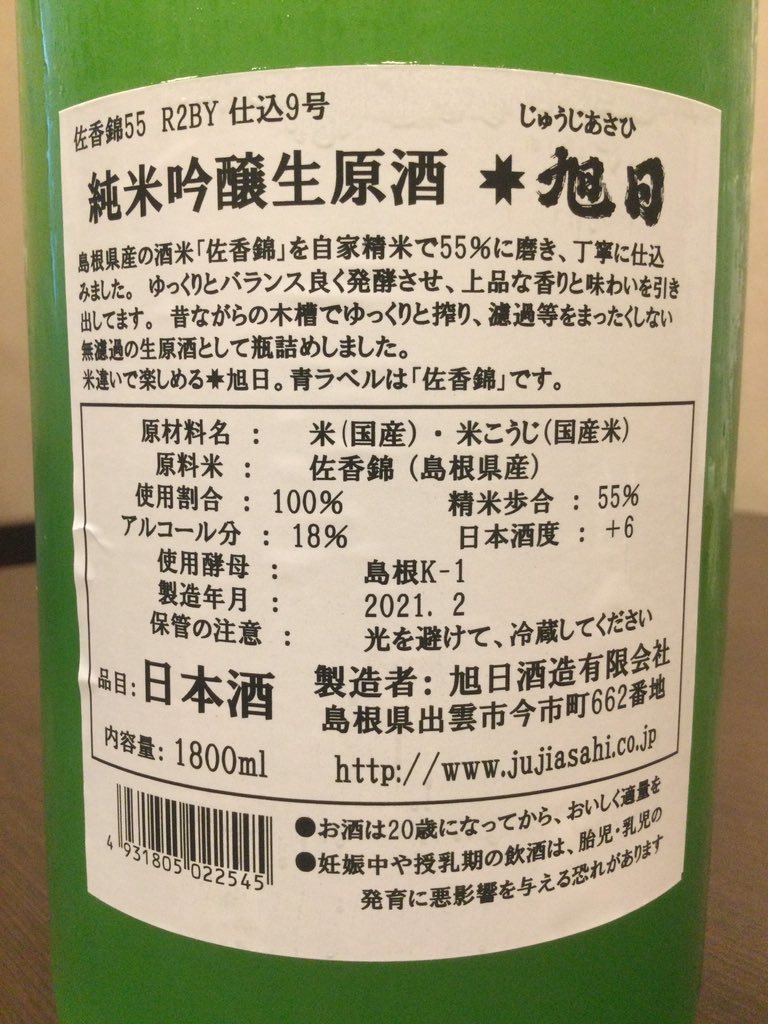 今週8日金曜日には久しぶりの“濁り酒”「十字旭日 純米吟醸生原酒“佐香錦”」を開栓します。