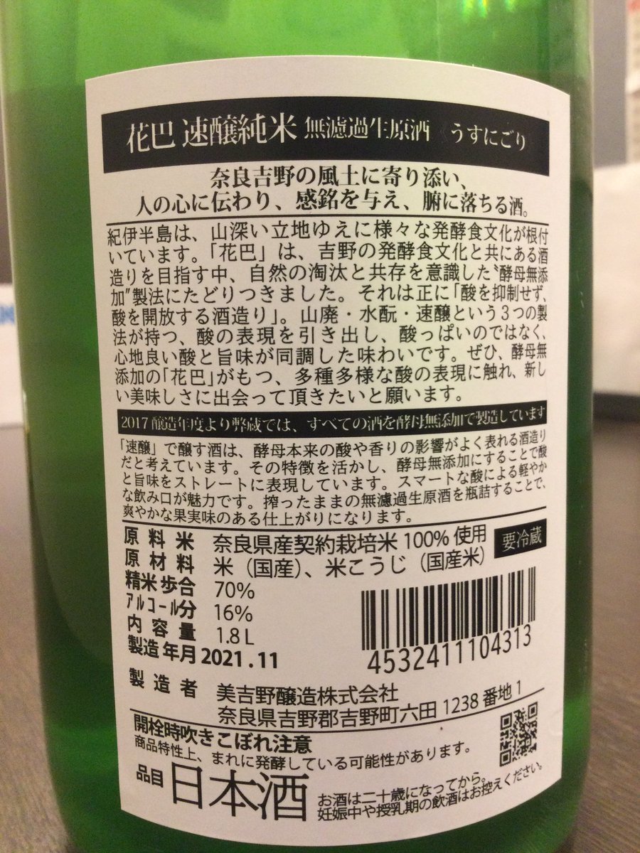 燗酒特集のスターティングラインナップで限定1本がわずか数日で売り切れになっていた「花巴(奈良県)速醸純米生」酒造年度の新しいものに代わりますが再発売しました。