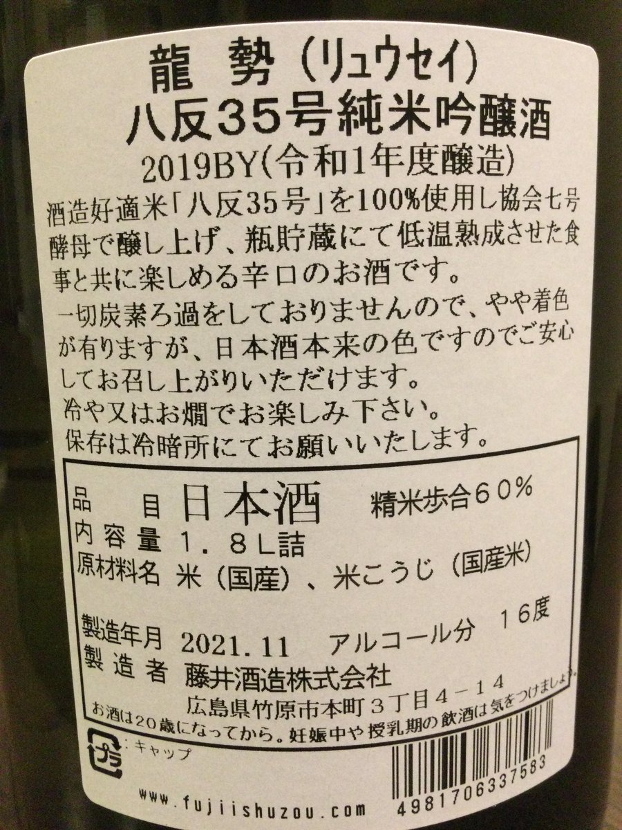 代わって「龍勢リュウセイ(広島県)純米吟醸“八反35号”」を発売します。