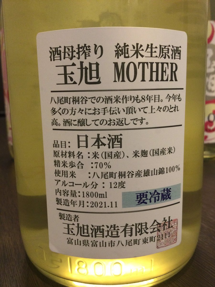 富山県の玉旭酒造さんの酒母搾りシリーズ「MOTHER」の新酒が入荷致しました。