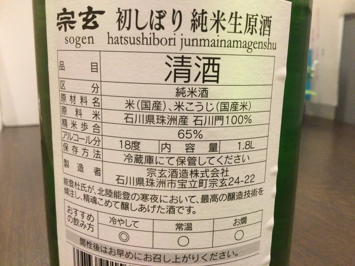 今年も残すところあと10日ほど、「宗玄(石川県)純米生原酒“初しぼり”」が届きました。