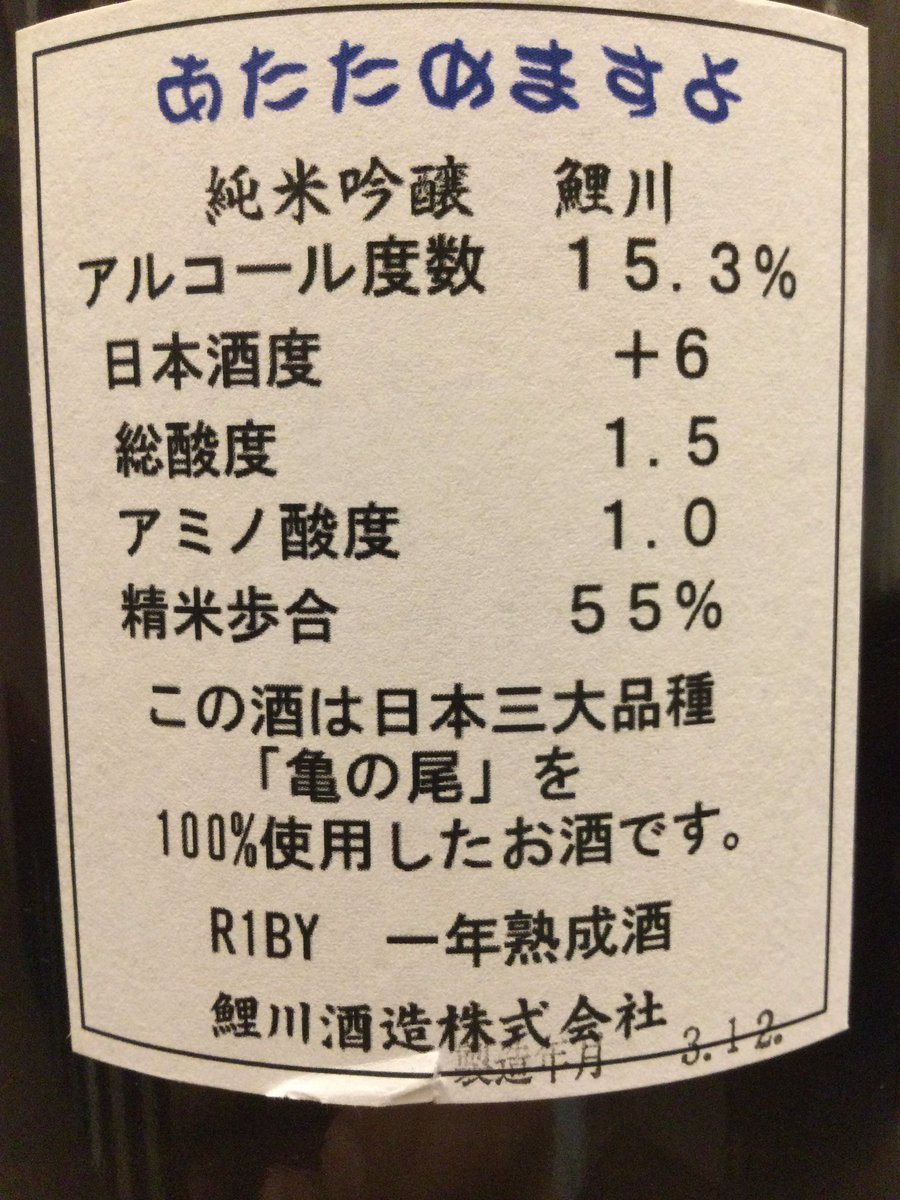 「鯉川(山形県)純米吟醸“あたためますよ”第三弾(亀の尾バージョン)」を燗酒特集に追加しました。