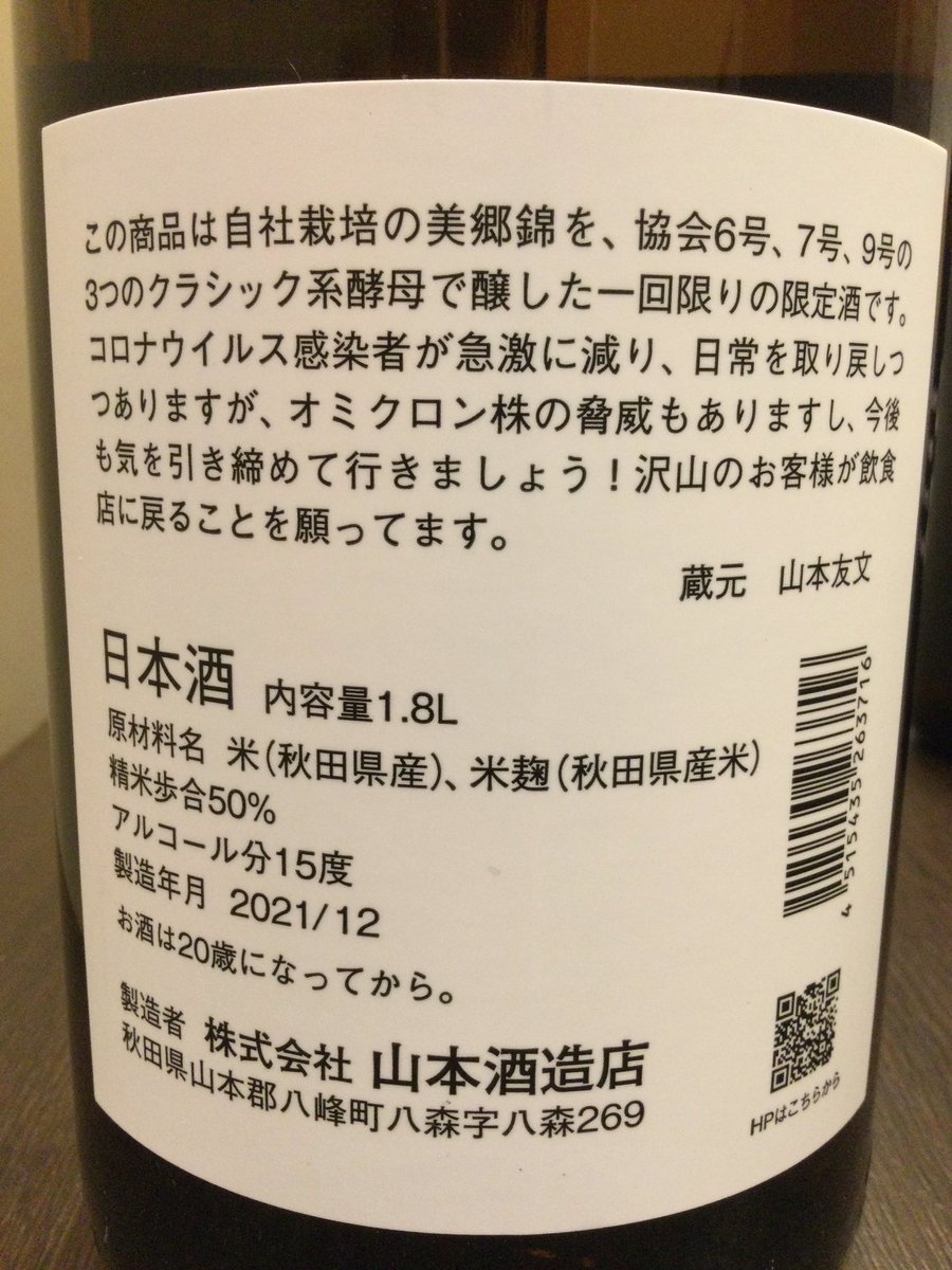 秋田県の山本酒造店さんから昨年の「コロナウィルスのバカ野郎!」の第二弾として発売された飲食店応援の限定品が入荷しています。
