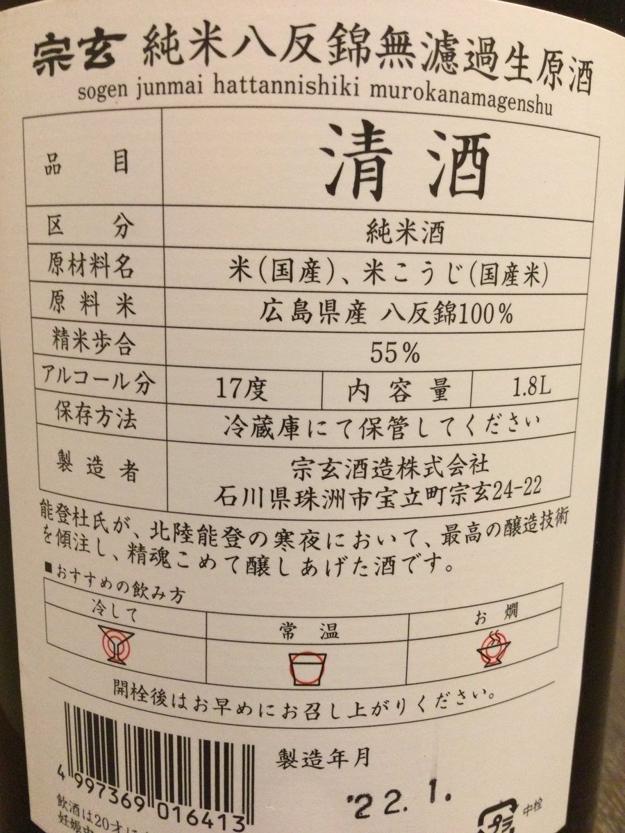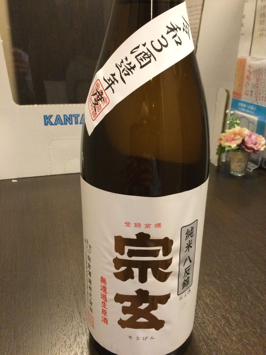 美味しい新酒「宗玄(石川県)純米無濾過生原酒“八反錦”」お燗もしくは冷酒でおススメします。