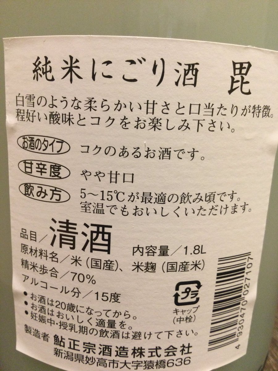 「鮎正宗(新潟県)純米濁り酒“びしゃもん”」コクと甘味がふわっと広がって心地よいお酒です。