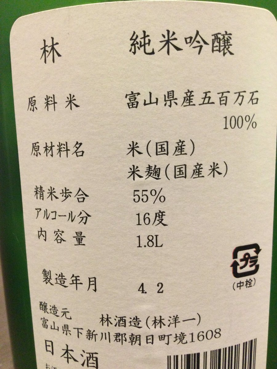 「林はやし(富山県)純米吟醸“五百万石”」本日より提供を開始します。