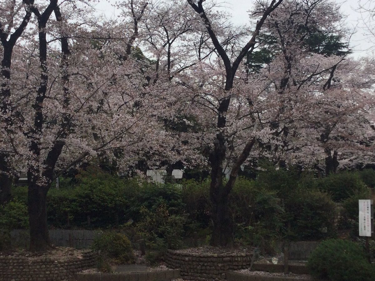 「花散らしの雨☂️」あいにくの天気ですが、斜向かいの公園の桜🌸もそろそろ今年の見納めになりました。