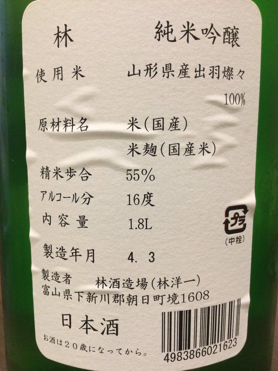 「林(富山県)純米吟醸“出羽燦々”」本日より発売します。