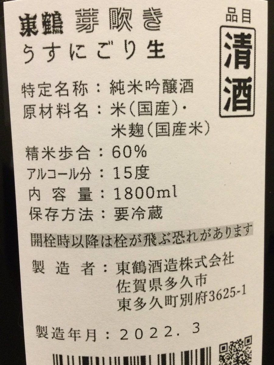 「東鶴(佐賀県)純米吟醸うすにごり生“芽吹き”」かなりの甘口ですが、酸味の構成に造詣深い常連さんから「燗も有りでしょ!」と指摘されてやってみたらコレがすごく良い…