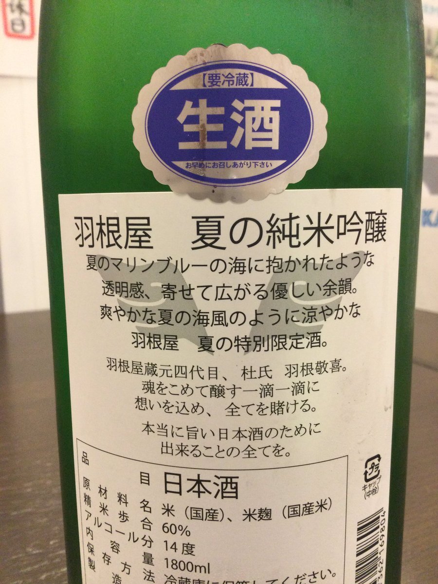 「羽根屋(富山県)“夏の純米吟醸”」が届きました。