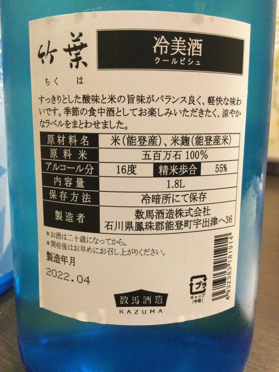 「竹葉(石川県)純米吟醸“冷美酒”」入荷してます。