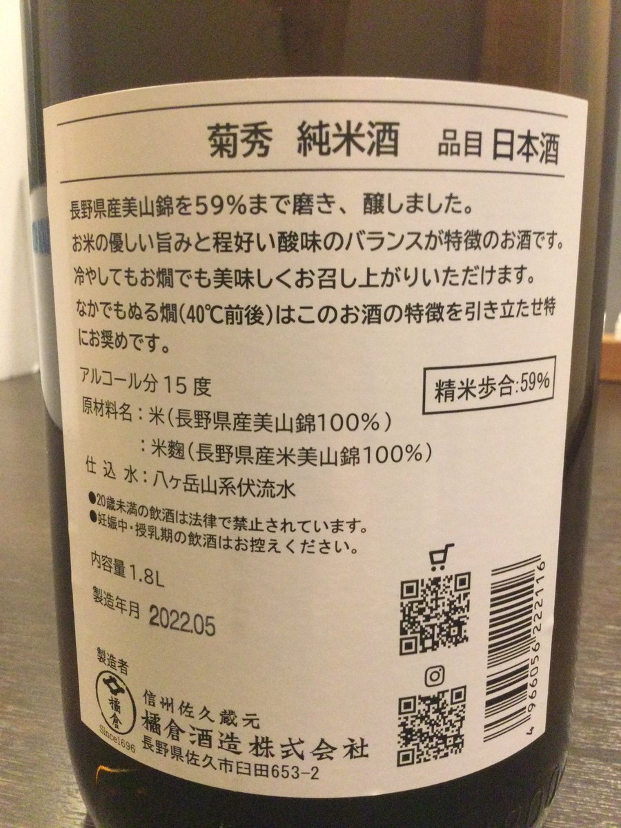 この時期にお燗ですか? って言われそうですが「菊秀きくひで(長野県)純米」浦和伊勢丹のB1で昨日まで説明販売に来ていた営業さんとウチの若旦那が話し合いスポット採用した燗向けです。