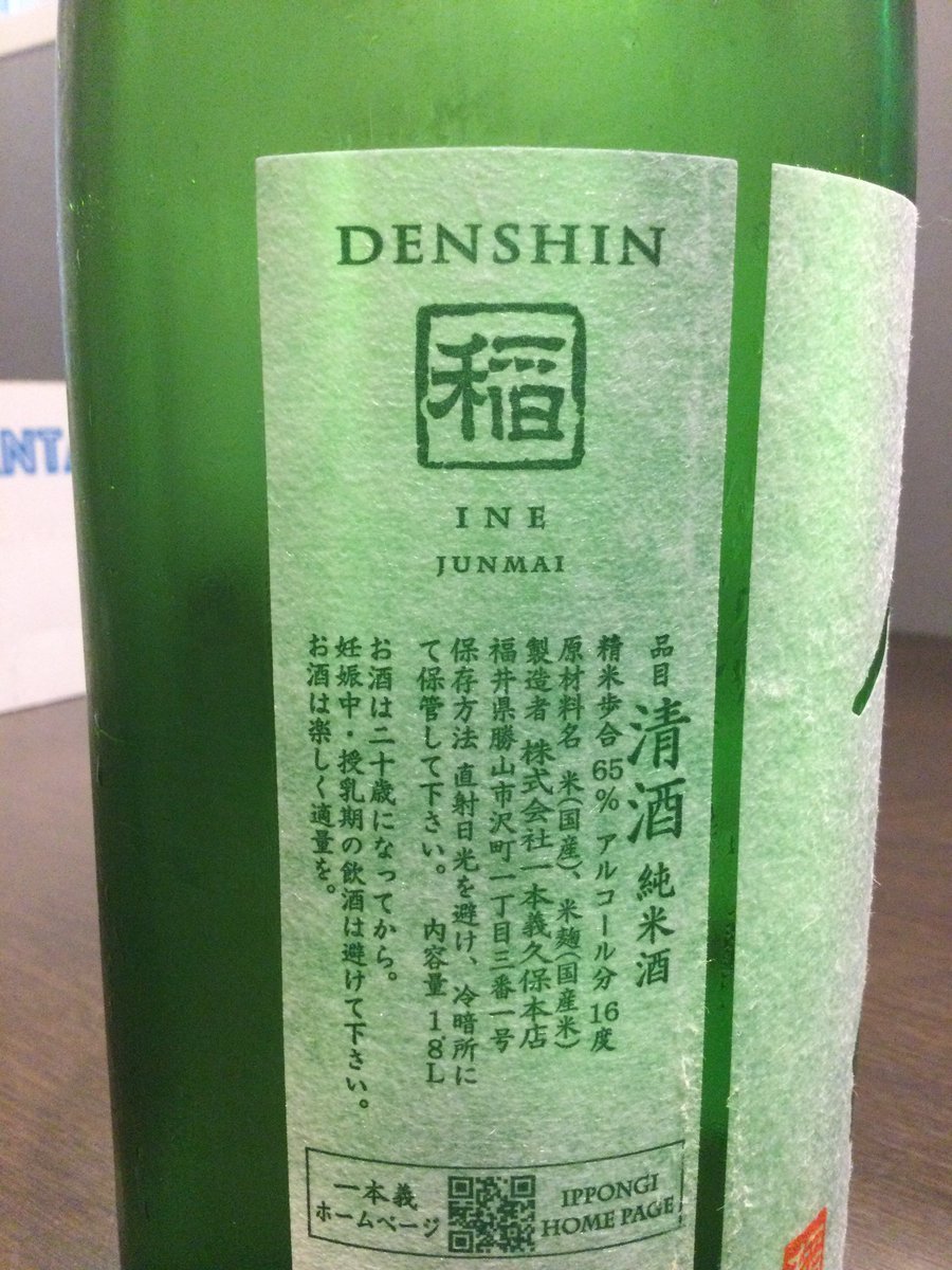 「伝心(福井県)純米“稲INE”」本日から発売します。