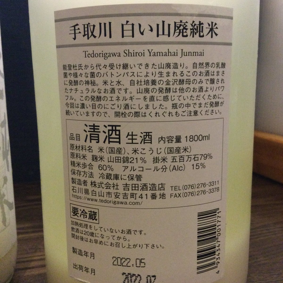 「手取川(石川県)“白い山廃純米”」キリっとした辛口の微発泡濁り生酒です。